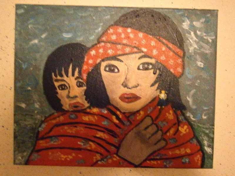 Indios - Mutter mit Kind, Acryl, 24x30cm € 100,00