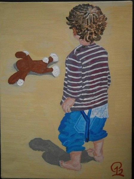 Junge mit Hasen, Acryl, 30x40 cm - verkauft